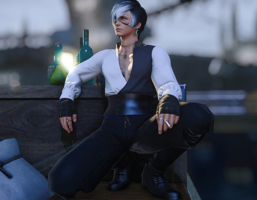 Currently, he recites the same routine and cycle, going through jobs and earning enough gil to make it through day to day life. His personality comes through as flirtatious and confident even if his intentions are empty. He is never one to be weary when it comes to the idea of new connections and is willing to build a network.