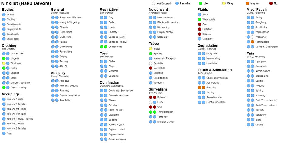 No lalas, but any other race is welcome regardless of gender for nsfw interactions. Haku is switch so he can play pretty much most roles but I would give the kinklist a look!